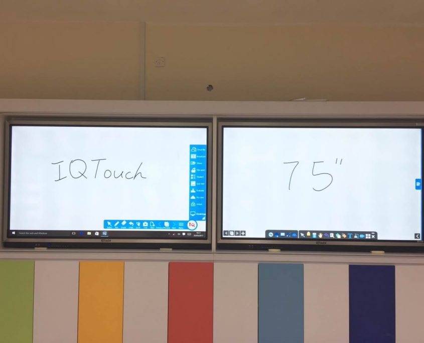 每个教室配备两个IQTouch互动显示屏和一个IQView互动文档摄像头。结合捆绑软件IQ互动教育平台,营造生动有趣的学习环境。